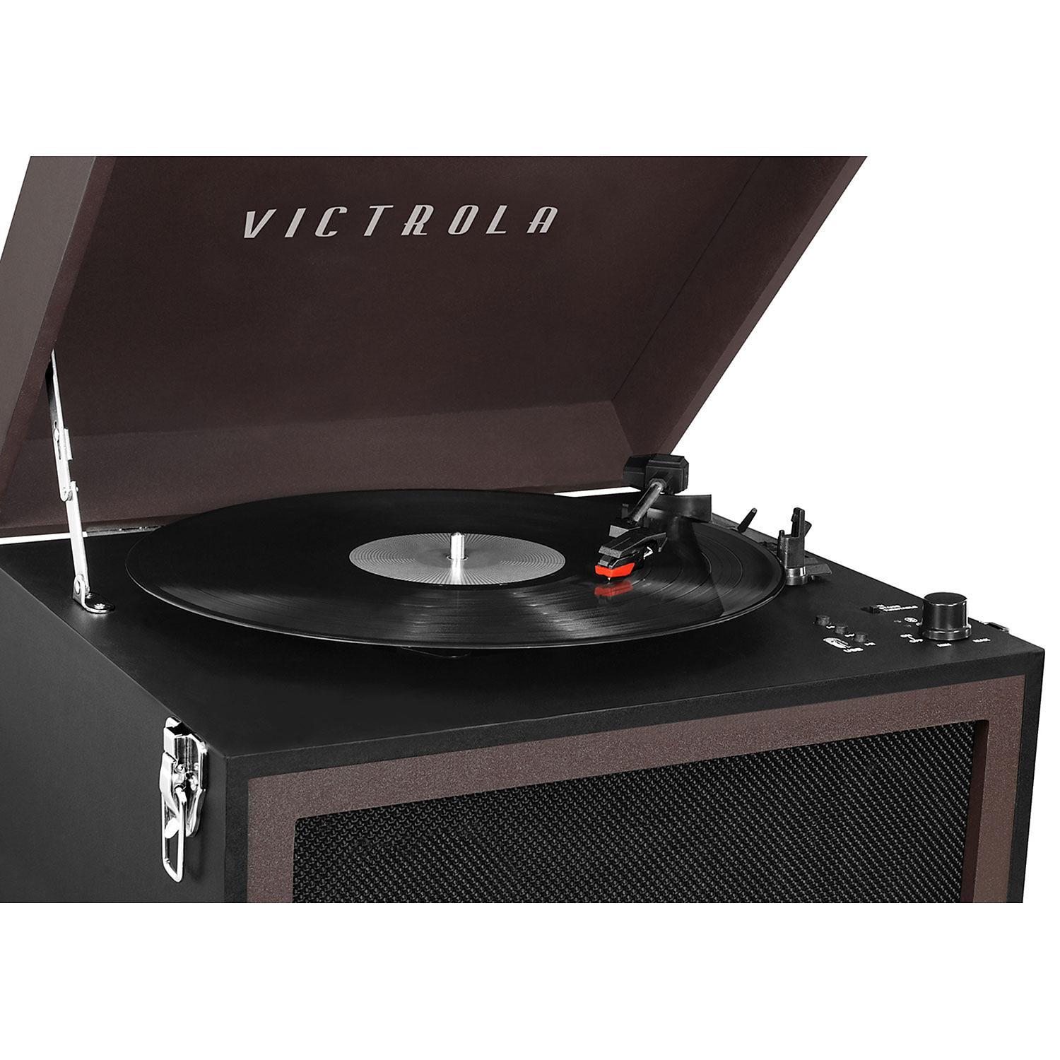 Victrola Suitcase Turntable With Bluetooth / Victrola Highland Bluetooth Record Player with 3-Speed / It comes with bluetooth capabilities so you can .. It comes with bluetooth capabilities so you can . Portable suitcase design with an easy carry handle enables you to easily transport your turntable. This is a budget friendly, well working turntable. Choose from same day delivery, drive up or order pickup.